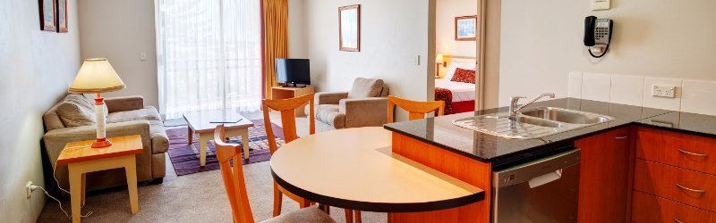 Providing everything for a memorable visit our one bedroom apartments ensure a comfortable stay with self-catering facilities. Situated on all levels these elegant resort units feature a large private balcony, stylish lounge, full laundry, excellent modern kitchens and spacious bathrooms. The separate bedroom opens to the balcony and offers a queen ensemble with crisp modern linen.
