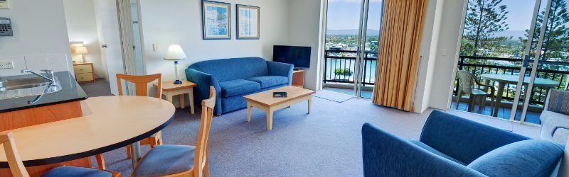 Enjoy the extra space of the one plus bedroom apartment. The stylish and contemporary décor features a comfortable lounge setting and a double sofa bed. The modern kitchen provides full cooking facilities and modern stainless steel appliances. A separate laundry and spacious 2-way bathroom with walk-in shower complement the design.